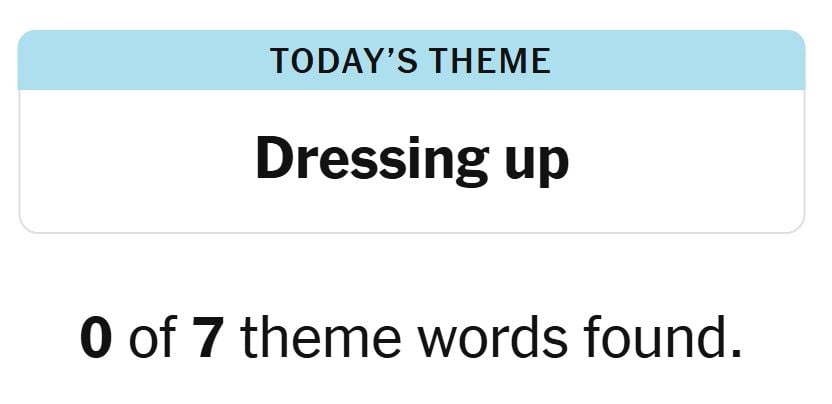 Today’s theme or trace for the puzzle is, “DRESSING UP” and there are seven theme phrases to be discovered.