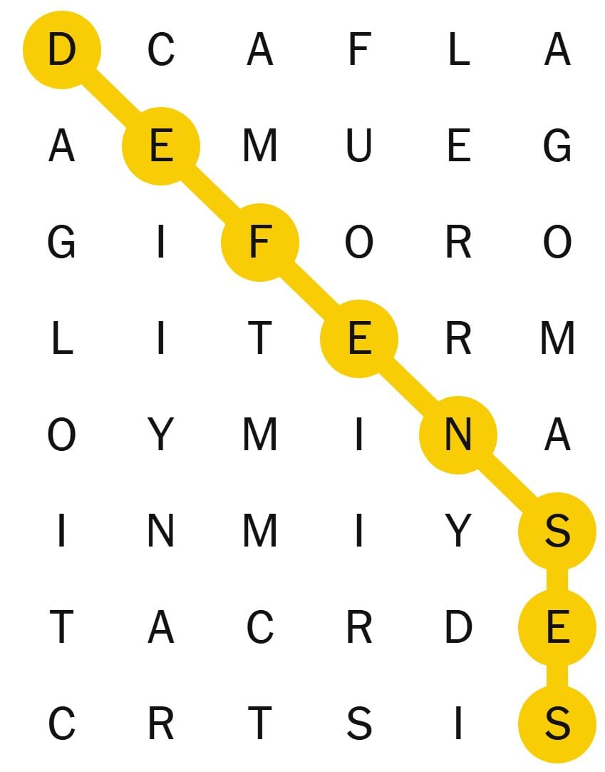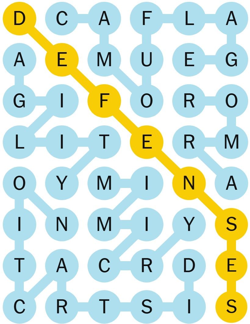 There’s additionally a “spangram” which is a phrase on the board that describes the theme of the puzzle for the day. It’s going to contact two reverse sides of the board and could also be two phrases.