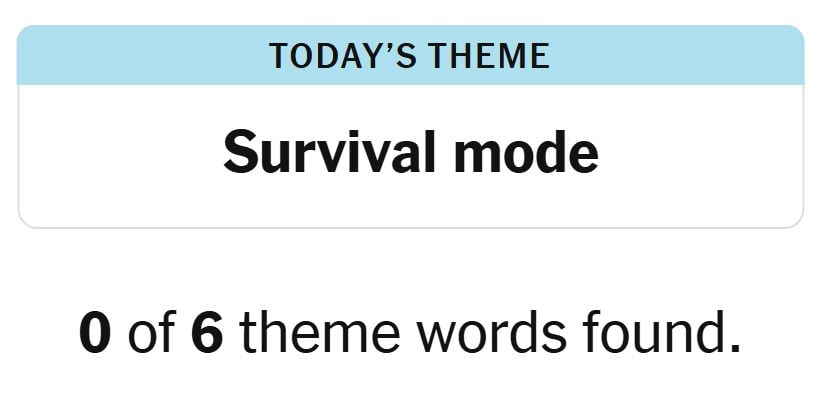 Today’s theme or trace for the puzzle is, “SURVIVAL MODE” and there are six theme phrases to be discovered.