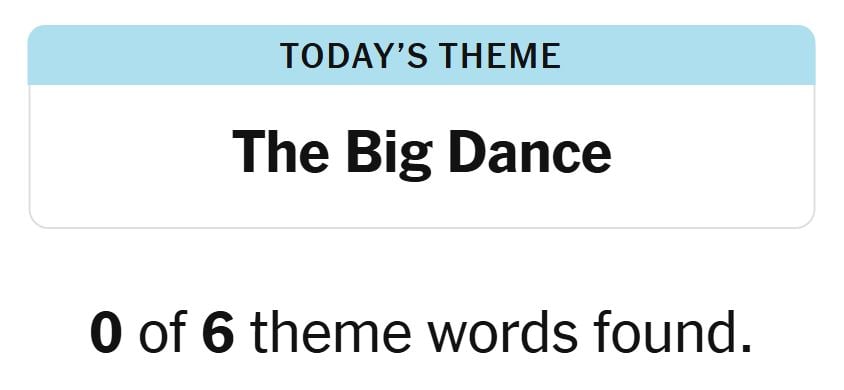 Today’s theme or trace for the puzzle is, “THE BIG DANCE” and there are six theme phrases to be discovered.