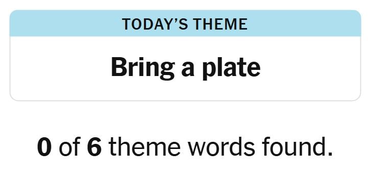 Today’s theme or trace for the puzzle is, “BRING A PLATE” and there are six theme phrases to be discovered.