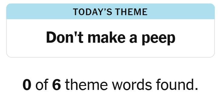 Today’s theme or trace for the puzzle is, “DON’T MAKE A PEEP” and there are six theme phrases to be discovered.