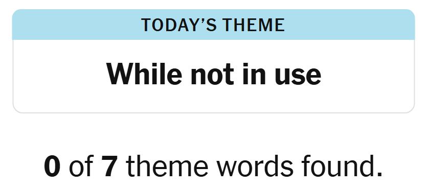 Today’s theme or trace for the puzzle is, “WHILE NOT IN USE” and there are seven theme phrases to be discovered.