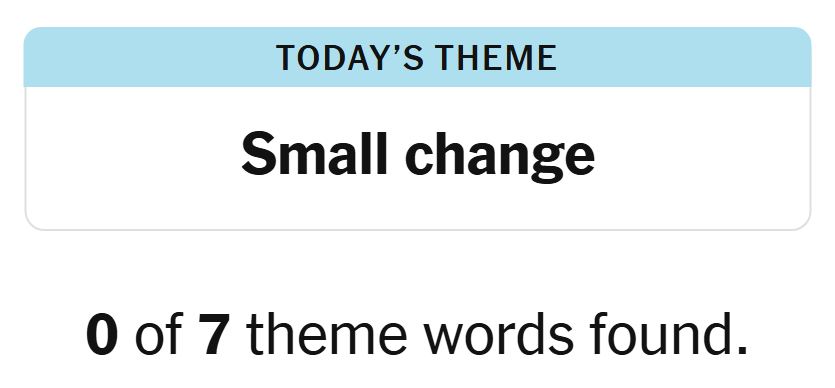 Today’s theme or trace for the puzzle is, “SMALL CHANGE” and there are six theme phrases to be discovered.