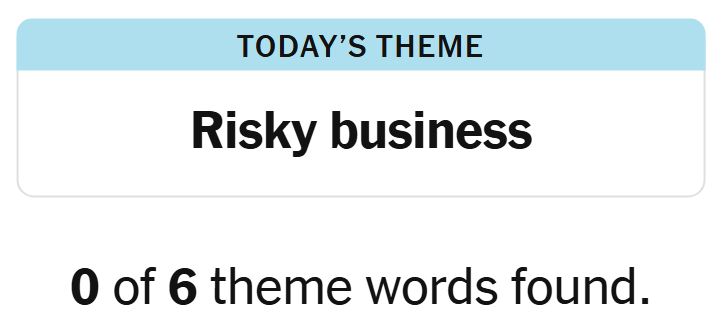 Today’s theme or trace for the puzzle is, “RISKY BUSINESS” and there are six theme phrases to be discovered.