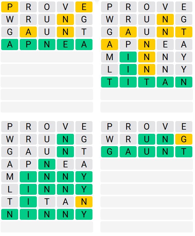 It’s the most well-liked each day phrase sport exterior of Wordle as a result of elevated stage of issue. Gamers should guess 4 five-letter phrases in as few as 9 makes an attempt, reasonably than guessing one phrase.