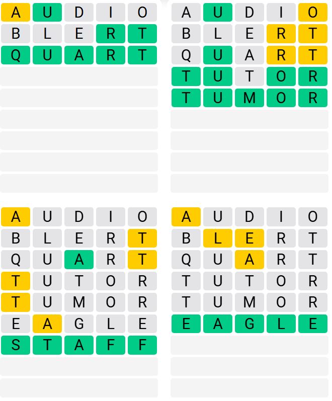 Daily at midnight, the every day sport mode offers gamers a brand new set of phrases for the Quordle puzzle.