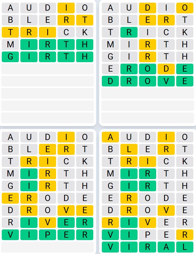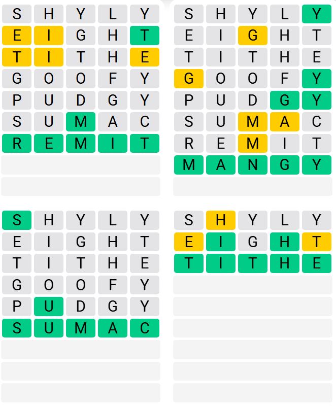 Once more, there are 4 phrases to guess, nonetheless, you’ll solely have 8 guesses and the phrases might be extra uncommon.