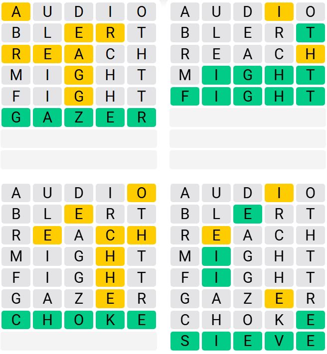 It’s the most well-liked every day phrase sport outdoors of Wordle as a result of elevated degree of problem. Gamers should guess 4 five-letter phrases in as few as 9 makes an attempt, somewhat than guessing one phrase.