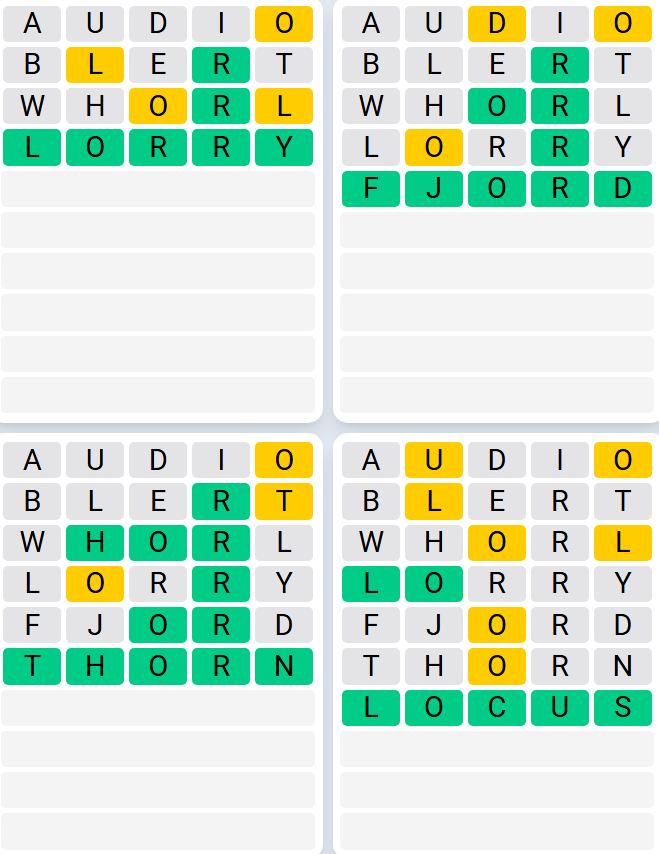 The solutions to Quordle Sequence launched at present are: