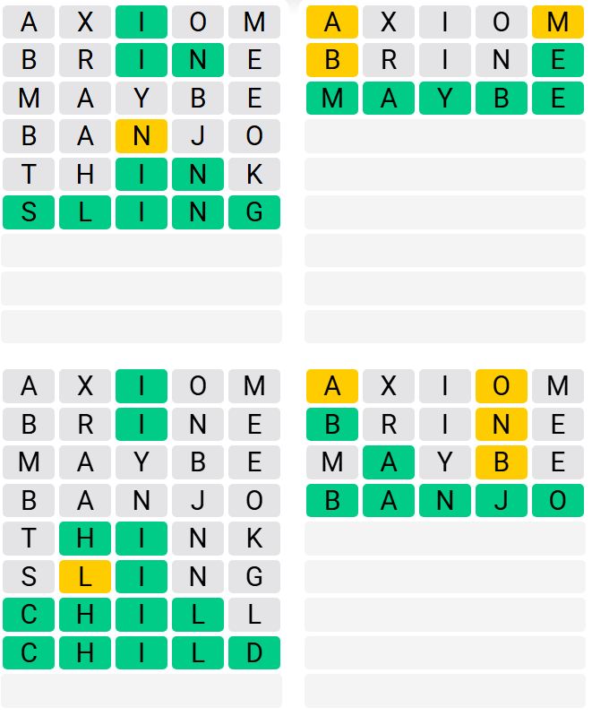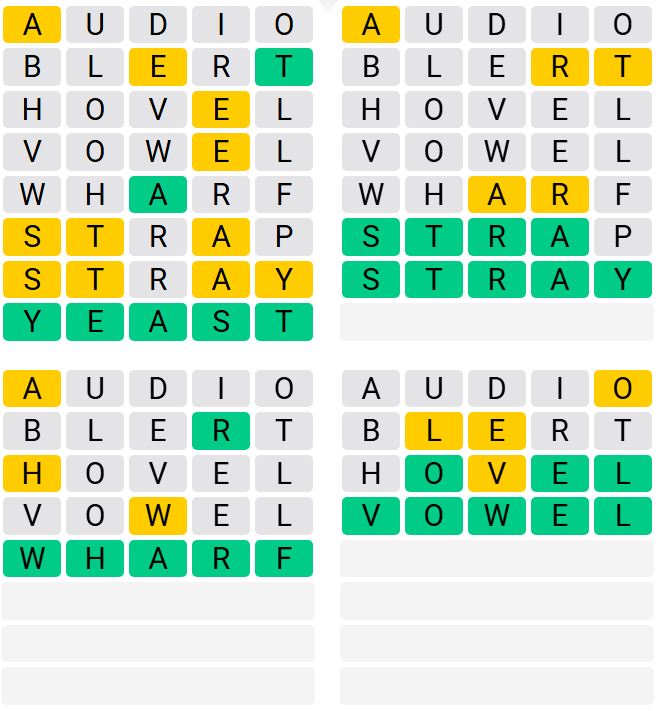 It’s the most well-liked each day phrase sport exterior of Wordle as a result of elevated stage of issue. Gamers should guess 4 five-letter phrases in as few as 9 makes an attempt, fairly than guessing one phrase.