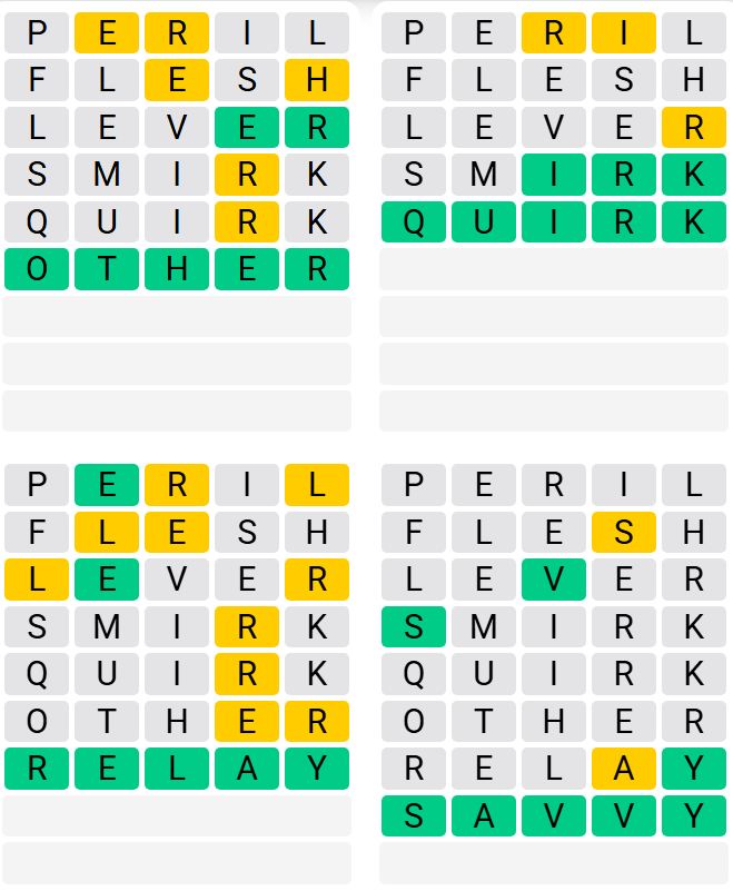 It’s the most well-liked day by day phrase recreation outdoors of Wordle because of the elevated stage of issue. Gamers should guess 4 five-letter phrases in as few as 9 makes an attempt, quite than guessing one phrase.