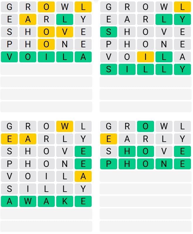 It’s the preferred every day phrase recreation outdoors of Wordle as a result of elevated stage of issue. Gamers should guess 4 five-letter phrases in as few as 9 makes an attempt, quite than guessing one phrase.