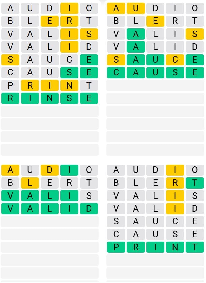 It’s the most well-liked each day phrase recreation exterior of Wordle because of the elevated degree of issue. Gamers should guess 4 five-letter phrases in as few as 9 makes an attempt, somewhat than guessing one phrase.