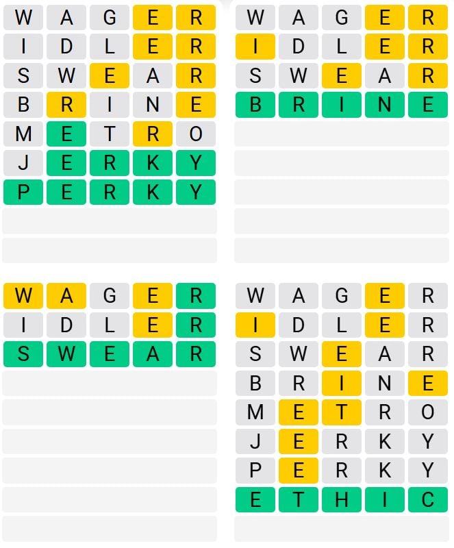 It’s the most well-liked each day phrase recreation outdoors of Wordle as a result of elevated degree of problem. Gamers should guess 4 five-letter phrases in as few as 9 makes an attempt, quite than guessing one phrase.