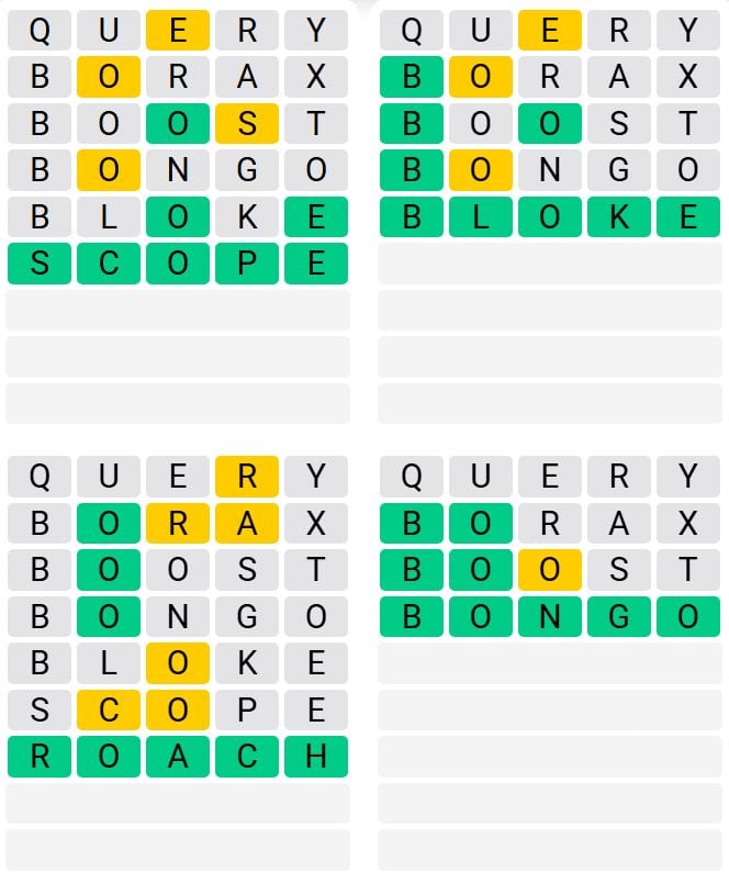 It’s the preferred every day phrase sport exterior of Wordle as a result of elevated stage of issue. Gamers should guess 4 five-letter phrases in as few as 9 makes an attempt, reasonably than guessing one phrase.