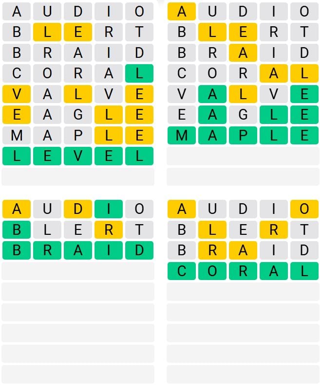 Once more, there are 4 phrases to guess, nevertheless, you’ll solely have 8 guesses and the phrases might be extra uncommon.