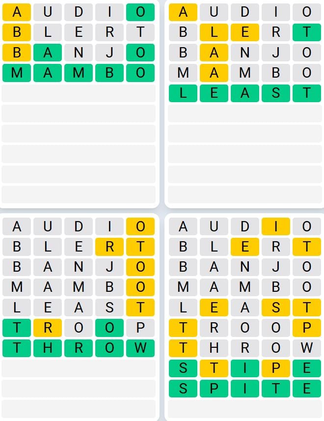The solutions to Quordle Sequence launched at the moment are: