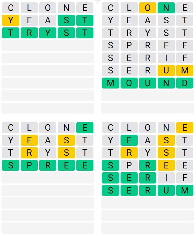 It’s the most well-liked every day phrase recreation exterior of Wordle as a result of elevated degree of issue. Gamers should guess 4 five-letter phrases in as few as 9 makes an attempt, moderately than guessing one phrase.
