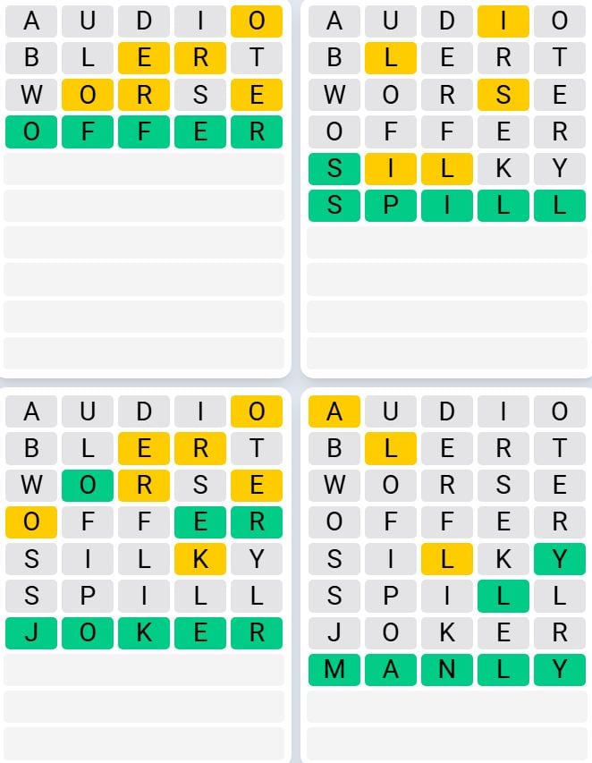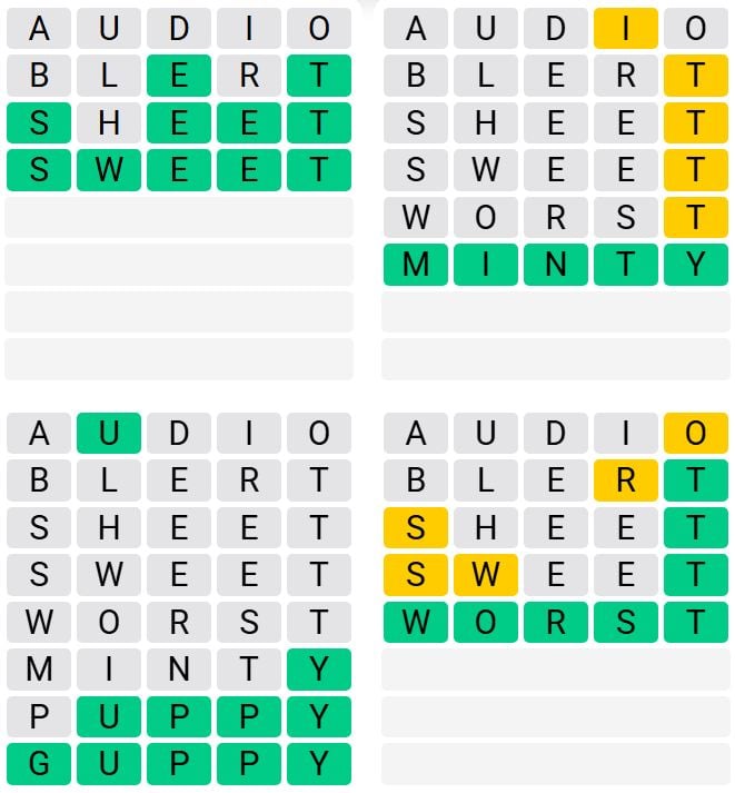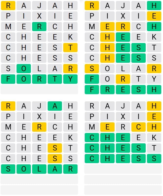 It’s the most well-liked every day phrase recreation exterior of Wordle as a result of elevated degree of issue. Gamers should guess 4 five-letter phrases in as few as 9 makes an attempt, fairly than guessing one phrase.