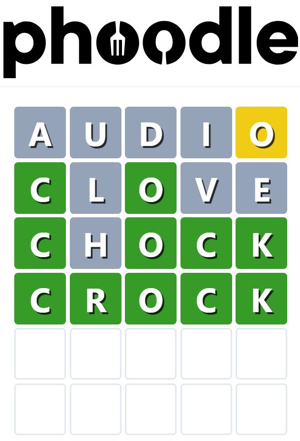 Phoodle is one other Wordle-inspired sport we’ve got discovered, which is one other food-related sport. Gamers have to guess the five-letter food-related time period, which could be something from home equipment to well-known cooks and extra.