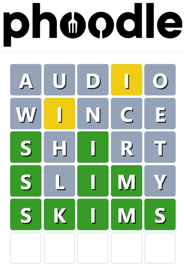 Phoodle is one other Wordle-inspired recreation we’ve discovered, which is one other food-related recreation. Gamers must guess the five-letter food-related time period, which will be something from home equipment to well-known cooks and extra.