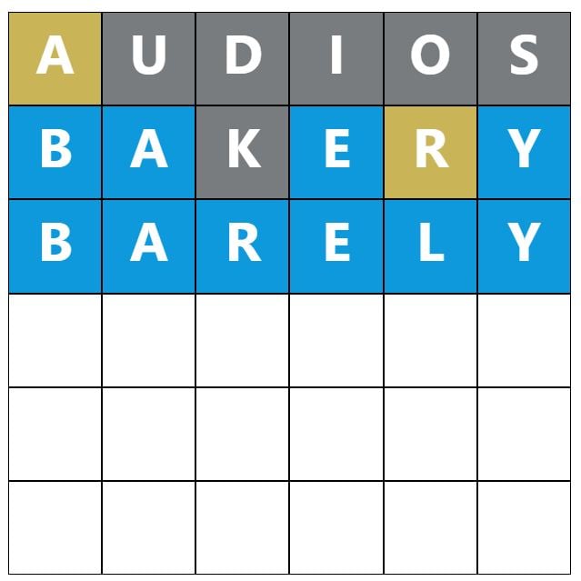 Whenever you make a guess, the colors of the tiles will change, indicating whether or not the letters you guessed are within the reply and whether or not you’ve appropriately positioned them within the phrase. This recreation’s colors are gray, yellow, and blue, which have almost certainly been modified to differentiate itself farther from the unique Wordle.