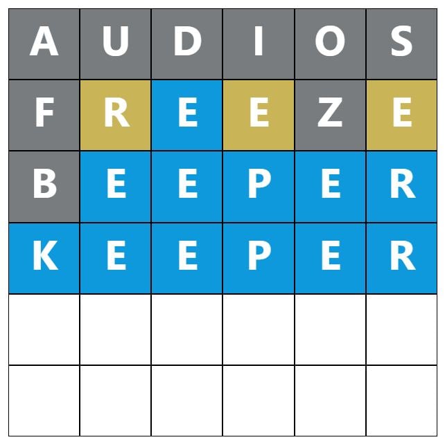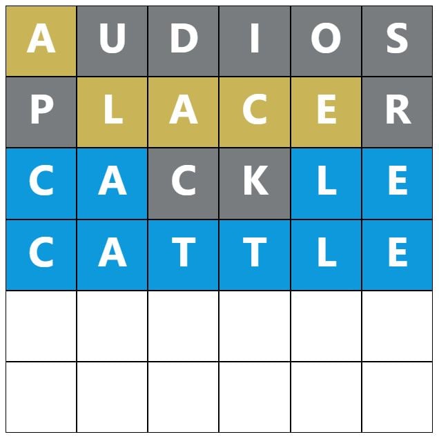 Whenever you make a guess, the colors of the tiles will change, indicating whether or not the letters you guessed are within the reply and whether or not you might have appropriately positioned them within the phrase. This recreation’s colors are gray, yellow, and blue, which have almost definitely been modified to tell apart itself farther from the unique Wordle.