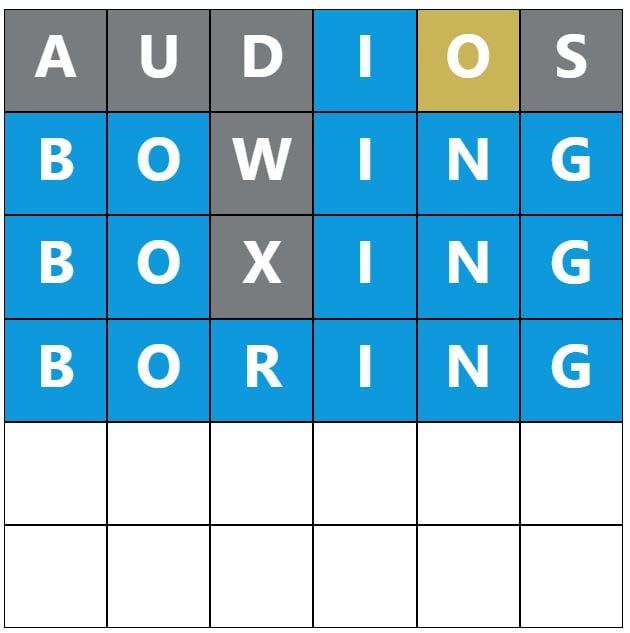 While you make a guess, the colors of the tiles will change, indicating whether or not the letters you guessed are within the reply and whether or not you will have appropriately positioned them within the phrase. This recreation’s colors are gray, yellow, and blue, which have probably been modified to tell apart itself farther from the unique Wordle.