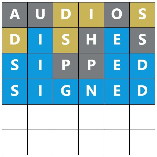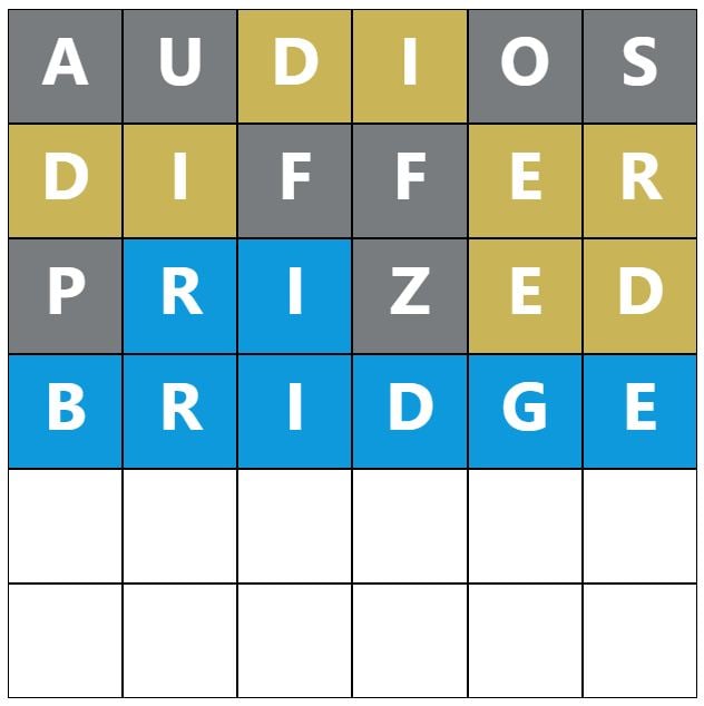 If you make a guess, the colors of the tiles will change, indicating whether or not the letters you guessed are within the reply and whether or not you will have appropriately positioned them within the phrase. This recreation’s colors are gray, yellow, and blue, which have almost definitely been modified to tell apart itself farther from the unique Wordle.