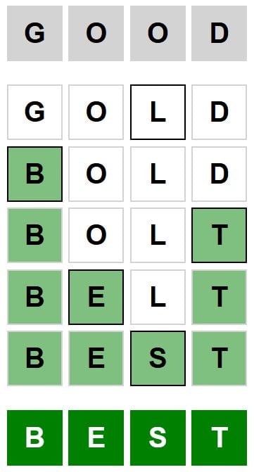 You want to change one letter in every subsequent phrase to get to the tip phrase, which could possibly be carried out by altering one letter within the backside phrase, making the optimum phrases 4, however this might not be the case for all Weaver puzzles.