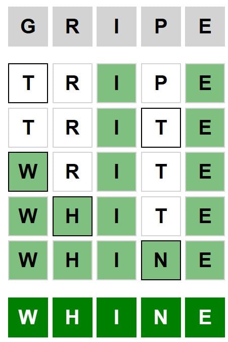 You want to change one letter in every subsequent phrase to get to the top phrase, which may very well be accomplished by altering one letter within the backside phrase, making the optimum phrases 4, however this might not be the case for all Weaver puzzles.
