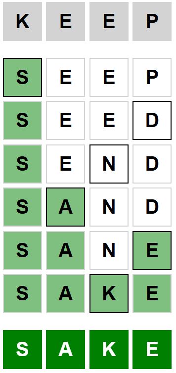 The starter phrase for the Weaver puzzle launched at present, May 1st 2026, is ‘KEEP‘ and the top phrase is ‘SAKE‘.