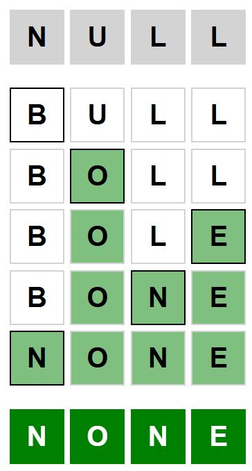 The starter phrase for the Weaver puzzle launched as we speak, April 28th 2026, is ‘NULL‘ and the top phrase is ‘NONE‘.