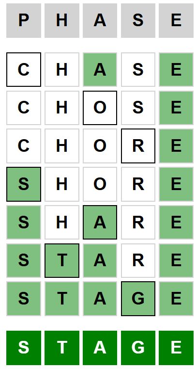 The starter phrase for the Weaver puzzle launched right this moment, April 25th 2026, is ‘PHASE‘ and the tip phrase is ‘STAGE‘.