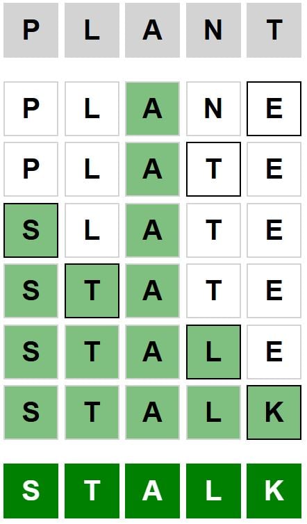 The starter phrase for the Weaver puzzle launched at this time, March 27th 2026, is ‘PLANT‘ and the top phrase is ‘STALK‘.