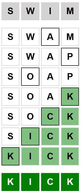 You want to change one letter in every subsequent phrase to get to the top phrase, which may very well be completed by altering one letter within the backside phrase, making the optimum phrases 4, however this might not be the case for all Weaver puzzles.