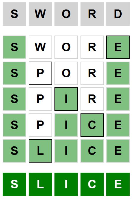 The starter phrase for the Weaver puzzle launched at present, January 28th 2026, is ‘SWORD‘ and the top phrase is ‘LSICE‘.