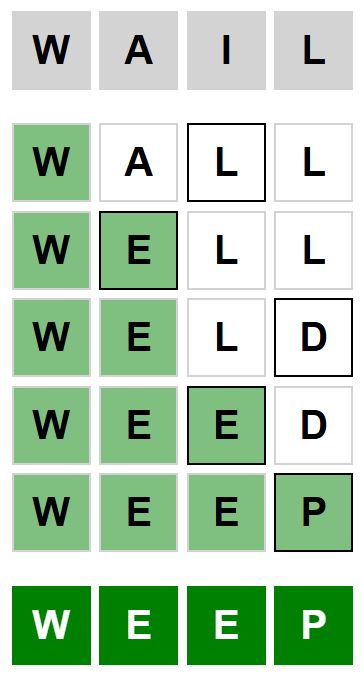 The starter phrase for the Weaver puzzle launched right this moment, April 22nd 2026, is ‘WAIL‘ and the tip phrase is ‘WEEP‘.