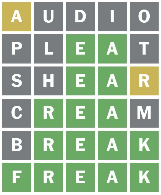 ‘SHEAR’ was the following phrase I guessed because it makes use of totally different letters than those already guessed.