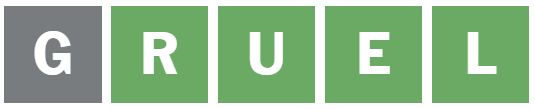 ‘GRUEL’ was the following phrase I guessed, which positioned the E and L appropriately, leaving the primary letter to be guessed.