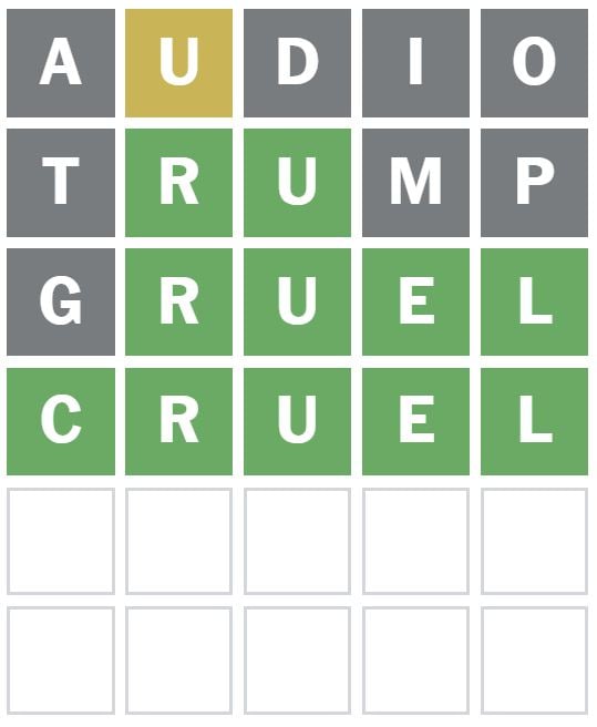 This guess confirmed me there’s a U within the reply at this time, however it isn’t the second letter.