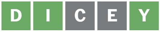 ‘DICEY’ was the following phrase I guessed as I haven’t guessed a phrase with an E but.
