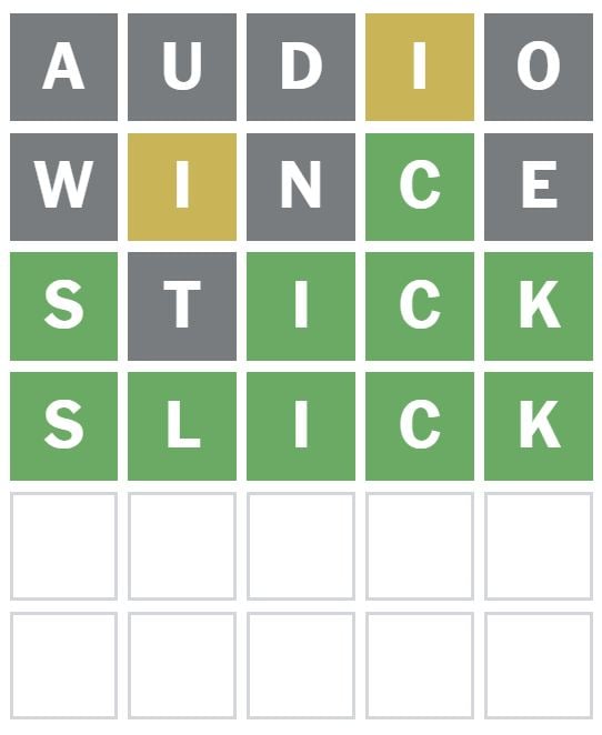 I is greater than seemingly the third letter. ‘STICK’ was the subsequent phrase I guessed, which positioned the S, I and Okay appropriately.