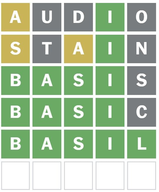 ‘BASIS’ was the subsequent phrase I guessed, which isn’t the Wordle reply right this moment.