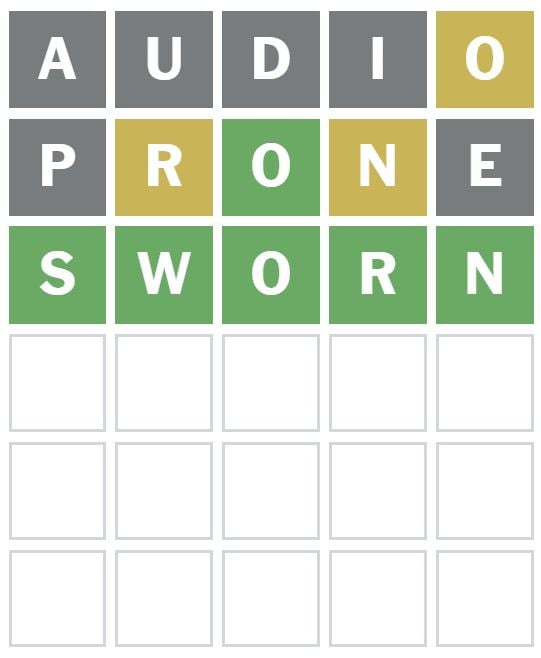 Right here is how I managed to resolve Wordle 1752 in three guesses in the present day. I guessed the phrase ‘AUDIO’ first, which is my normal starter phrase.
