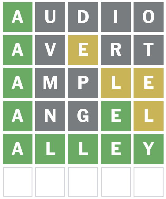 No new letters had been accurately positioned with this guess, however it did present me there’s an L within the reply in the present day.