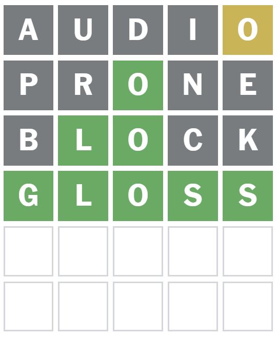 The O was accurately positioned because the third letter, however no different letters have been revealed to be within the reply at present with this guess.
