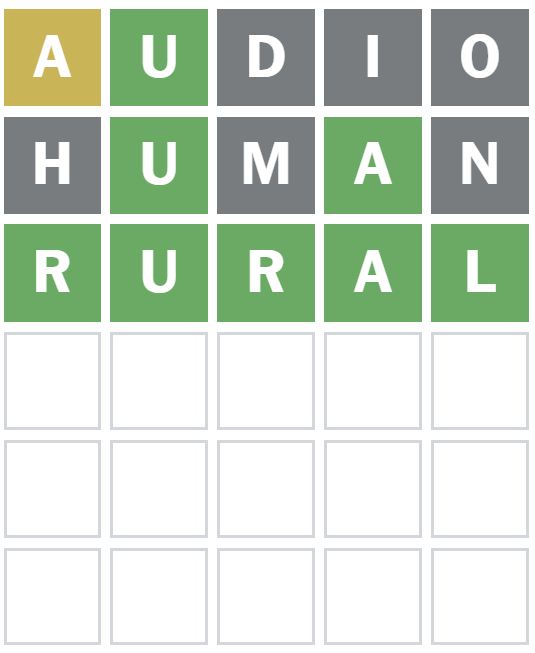Right here is how I managed to resolve Wordle 1775 in three guesses at present. I guessed the phrase ‘AUDIO’ first, which is my standard starter phrase.