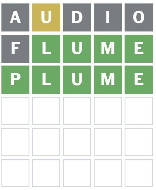 Right here is how I managed to resolve Wordle 1777 in three guesses as we speak. I guessed the phrase ‘AUDIO’ first, which is my common starter phrase.
